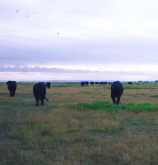 左:象さんの行列(20頭くらい。向こうに見えるチッチャなツブツブたちも)