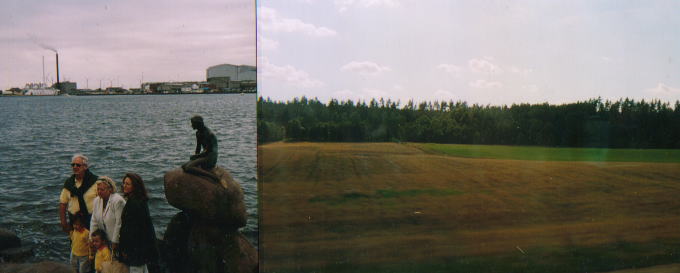 (左:言わずと知れた人魚像 右:X2000からの車窓風景)