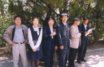 左:金海・金首露王陵にて。後向きがABCアナの高野直子さん。