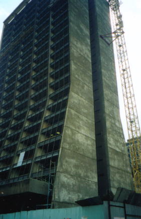 (左)アメリカ大使館爆破の際に被害を受けた隣のなんとか銀行ビル