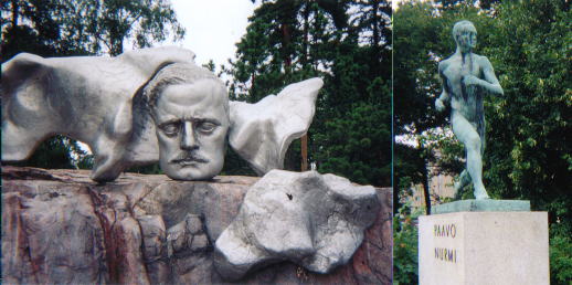 ビレン像のすぐ近くには、一世代前の英雄、ヌルミの銅像もありました(写真右。左はシベリウス公園)。