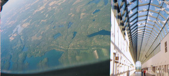 (左:空から見たフィンランド 右:北極圏センタ−)